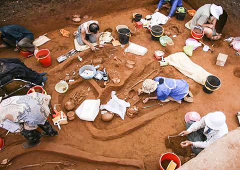 2007년 베트남 만 박(Man Bac)에서 현장 작업자들이 고대인 유해를 발굴하고 있는 모습. 하버드의대 연구팀은 여기에서 발굴되 고대인 DNA를 분석해 동남아지역으로 최소한 세 번 이상의 대규모 인구 유입이 있었다고 발표했다. CREDIT: Lorna Tilley, Australian National University