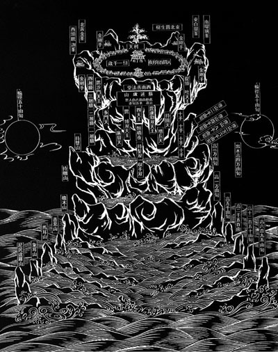-수미산의 그림으로 이구치 쓰네노리의 『천문도해(天文圖解)』(1689)에 제시된 것이다. 첨성대가 수미산을 형상화한 것이라는 주장이 있다.