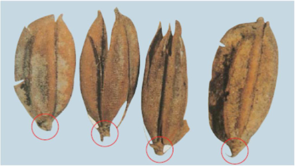 | ▲ 소로리볍씨의 소지경이 잘라진 모습. |